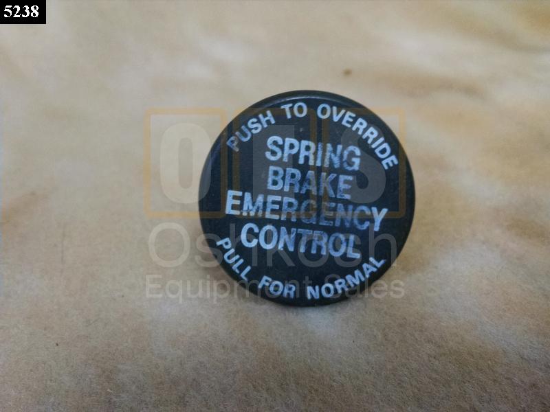 Knob for Spring Brake Override Valve on M939 Series Military Trucks. NOS items are exact replacement with correct text printed on the knob. New Replacement Knobs fit the application, but text printed on the knob is not correct. See pictures for details.