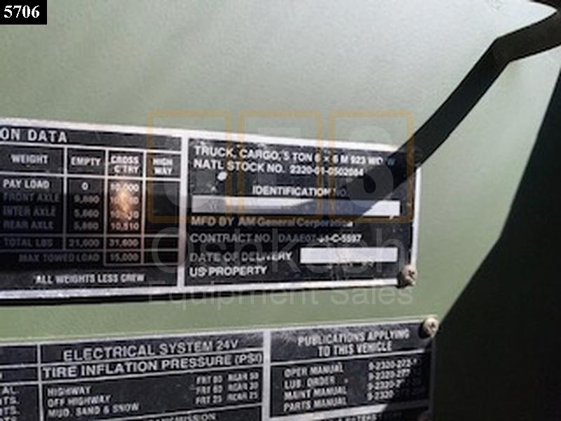 M923 Military Cargo Truck manufactured by AM General with a Cummins NHC-250 Diesel Engine and an Allison Automatic Transmission and a 2 speed Transfer Case. This vehicle has only 32,630 miles and 532 hours. The M923 has a 14-Foot cargo box with drop-sides for easy loading/unloading of equipment. Equipped with 1600 X 20 Singles and Anti-Lock Brakes. This truck has been fully reconditioned and is ready to be put to work!