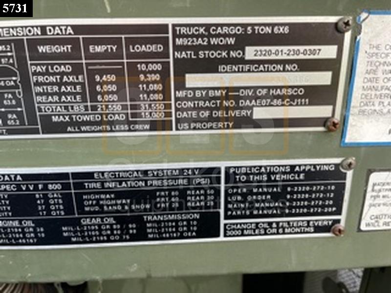 Truck, Cargo: 5 Ton 6X6 M923A2 WO/W