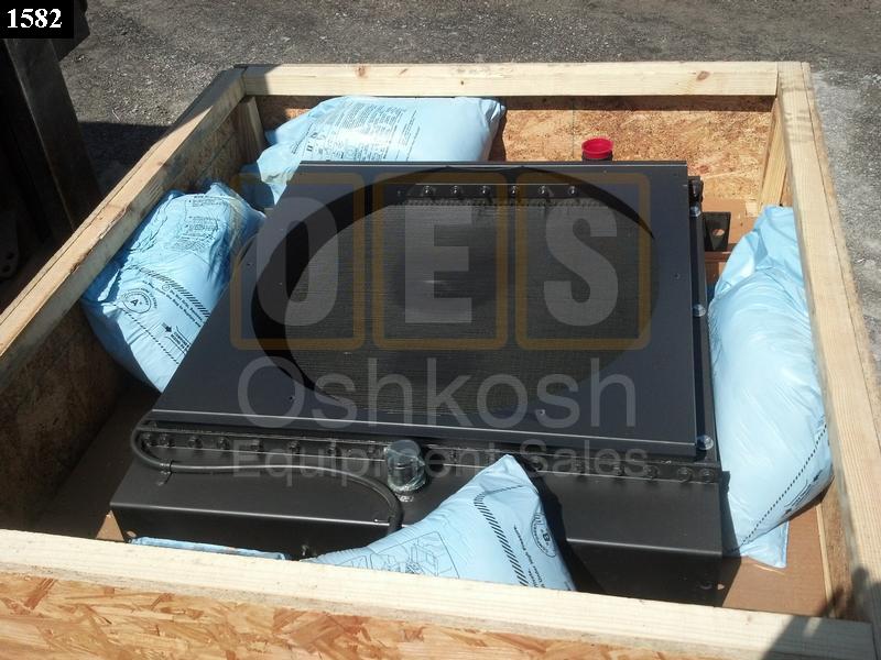 Radiator for the MHE-222 Athey Model 6K Rough Terrain Military Forklift. Radiator measures 32.5 inches Tall, 28.5 inches wide and 6.5 inches thick