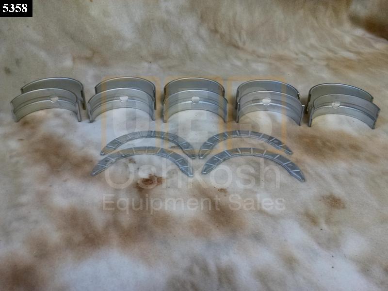 Crankshaft Main Bearing Set Standard Size for 6K Rough Terrain Military Forklifts with 4-53 Detroit. Includes 5 Upper and Lower Bearing Sleeves P/N 5116259 (Upper Shell) and 5116260 (Lower Shell) and 4 Thrust Washers P/N 5196755.