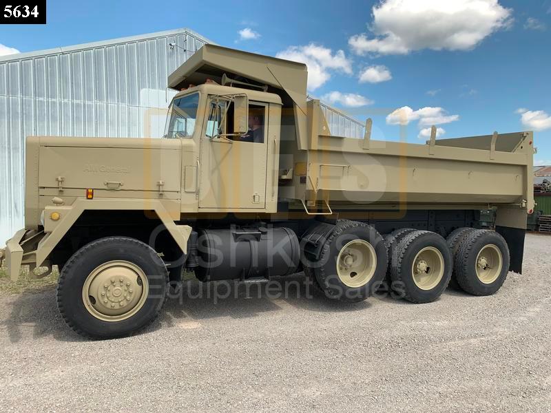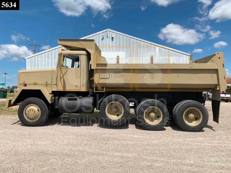 M917 Military Dump Truck manufactured by AM General with a Cummins NTC-400 Diesel Engine and 16-Speed Caterpillar 7155 Semi-Automatic Transmission. The M917 series truck has a 75,000 LB GVWR and a Hydraulic Dump Box that can haul up to 20 cu yd of material. This truck has a Hard Top, Cab Heater, 6-Wheel Drive and a tag axle for hauling serious heavy material! These trucks are awesome for both on and off-road use.