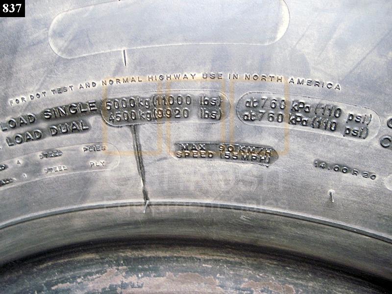1400R20 Michelin XZL Tire, Used Take-Off Tires with 80-90% Tread or More. May Have blemishes or Minor imperfections but in serviceable condition. These Tires are stock equipment on M809 and M939 Series Military Trucks with Single Wheel Configuration. Pictures show tire with 100% tread. Remaining stock is used with 80% to 90% tread remaining