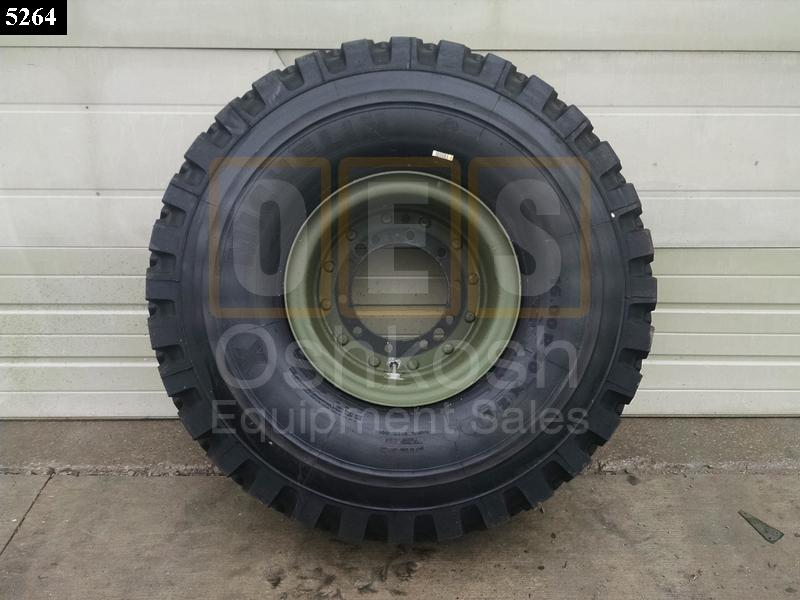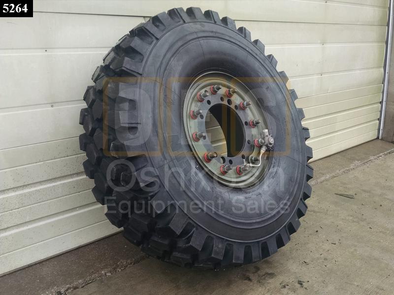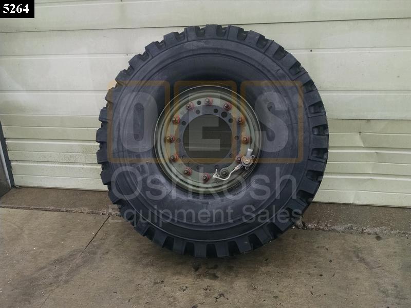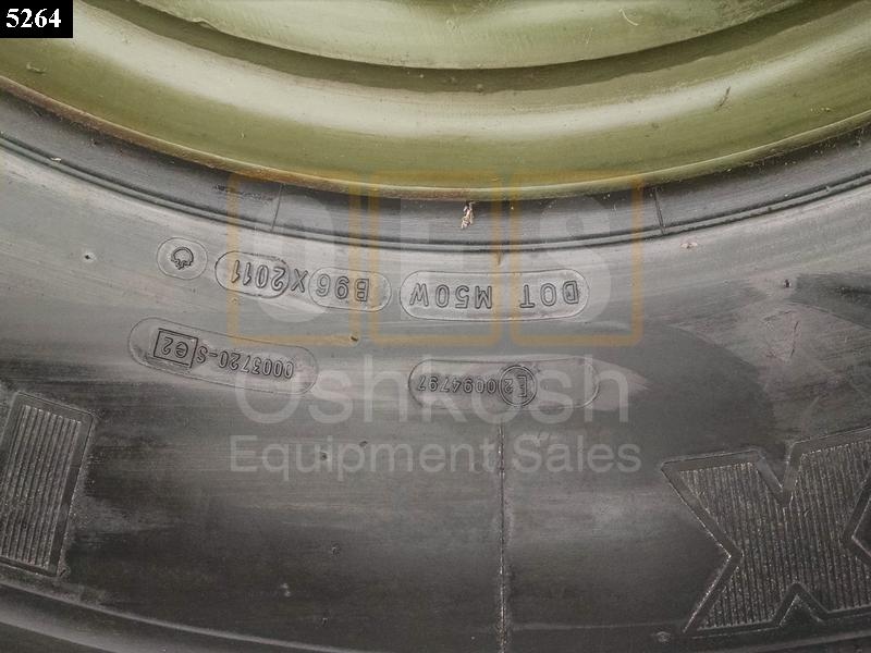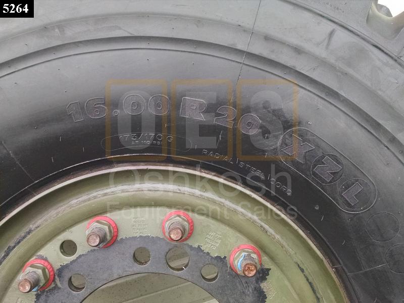 100% Tread 16.00 x 20 Michelin XZL Super Single Tires mounted on CTIS Wheel / Rim used on the Oshkosh MTVR Truck.