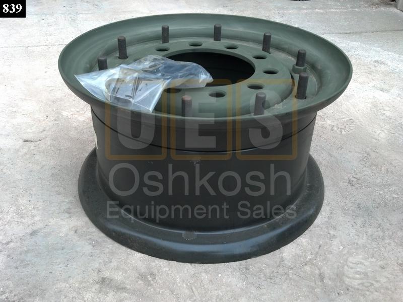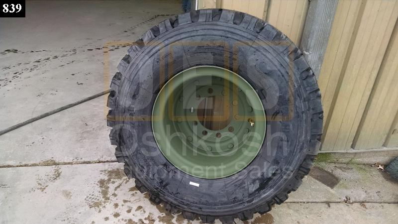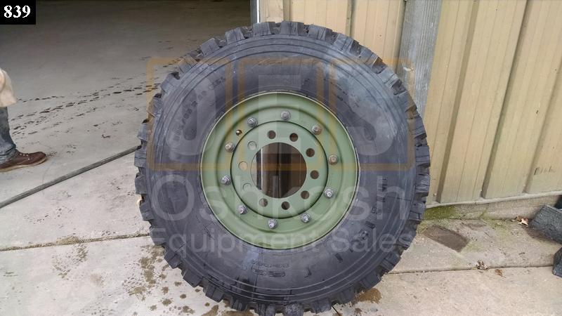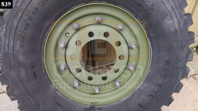 New 395/85R20 Michelin XZL Tire on NOS Two Piece Combat Wheel with new Valve Stem. Fits M39, M809 And M939 Series 5-Ton Military Trucks.