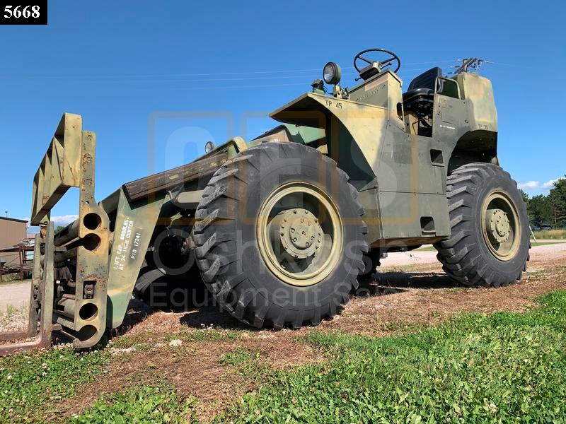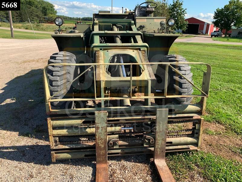 Fully Reconditioned Military Rough Terrain Forklift with 6,000 lb capacity, Four Wheel Drive, 3 Speed Transmission, Selectable Steering ( 2 Wheel, 4 Wheel, Crab) Fork Side-Shift, Full Machine Tilt, and Roll over Protection. Powered by a 4 cylinder Detroit Diesel 453. This unit has only seen 2029 hours of use. Fork tips are unworn and like new. These lifts are very user friendly and easy to operate. We have been using these machines at our facility for many years and they have proven to be very versatile and dependable.