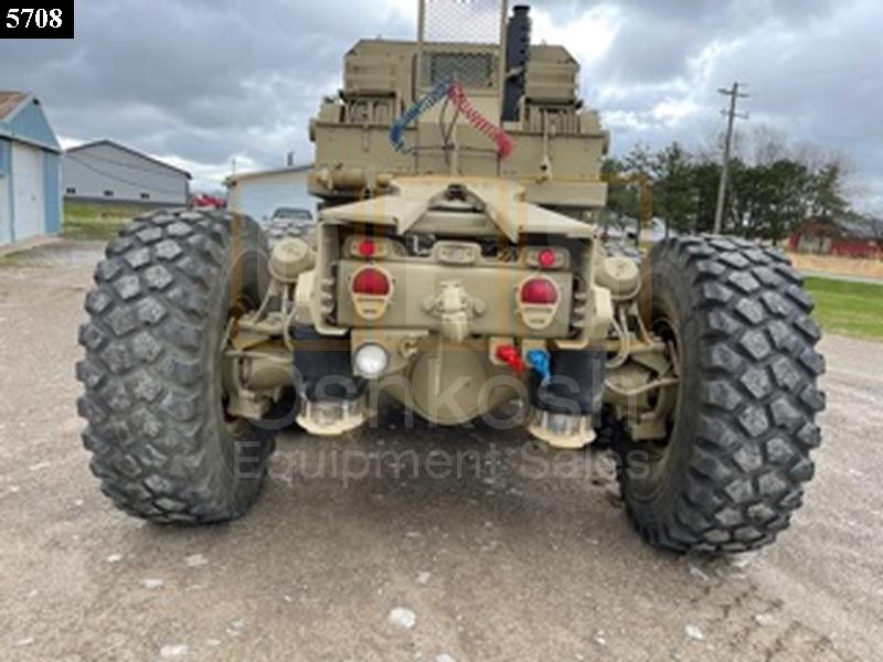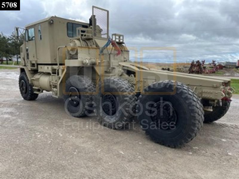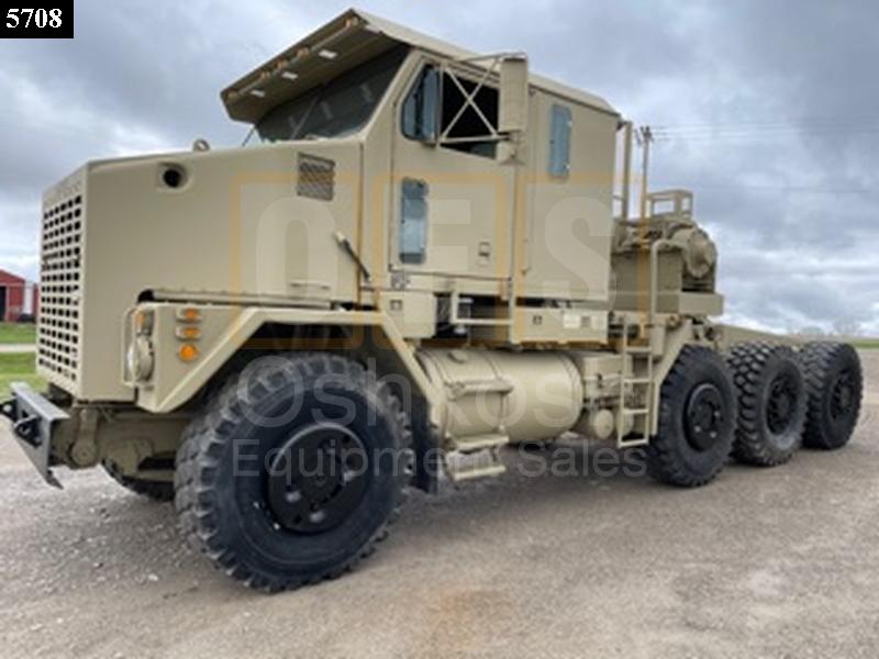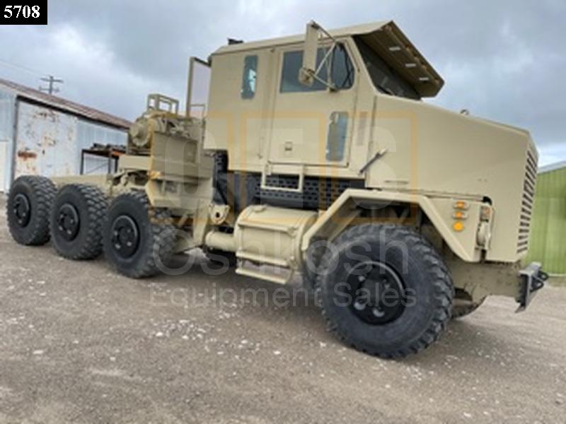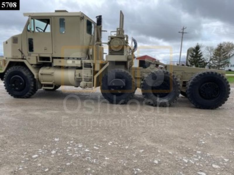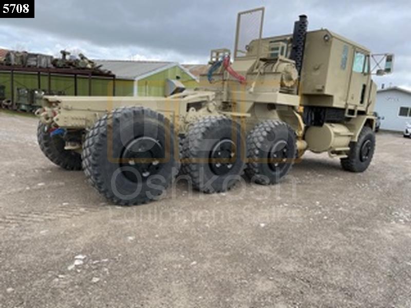 M1070 8x8 Military HET Tractor Truck Manufactured by Oshkosh Corporation with a Detroit Diesel 8V92 Turbocharged 500 HP Engine, an Allison CLT-754 Automatic Transmission and an Oshkosh 55000 two-speed transfer case. It has Front and Rear Axle Steering and 16.00R20 Michelin XZL Tires in good condition with Central Tire Inflation System (CTIS) for easy adjustment to suit multiple terrain conditions. The full oscillating fifth wheel accommodates M1000 and M747 trailers or any other trailer with 3-1/2 in. kingpin. There are two main winches, each having 55,000 lbs capacity, used for recovering, loading, and unloading heavy tracked/wheeled vehicles. This truck is in great operating condition and has been hand sanded, primed and painted. It was rebuilt by Oshkosh Corp. and has only 5,835 miles since the rebuild. Spare tires and wheels are available.