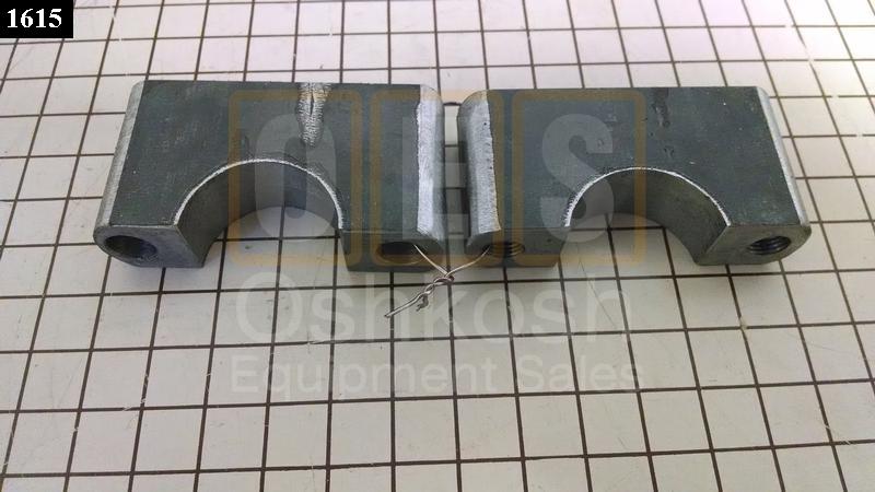 Dump Box Hoist Hydraulic Cylinder Rod Clamp. Used for Attaching the Hydraulic Ram Cylinders to the Dump Body. See related items below for required bolts. Set includes two halves. One is threaded and the other clearance