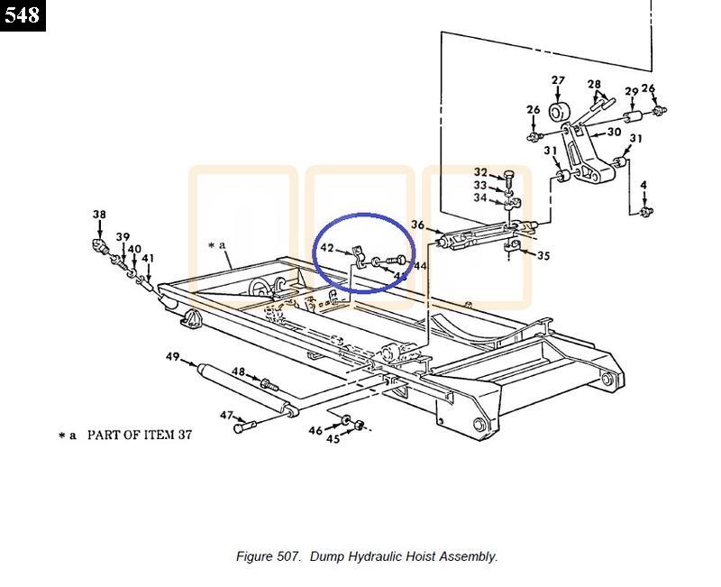Dump Box Hoist Hydraulic Cylinder Mounting Clamp for M939, M809 and M44 Series Military Dump Trucks.