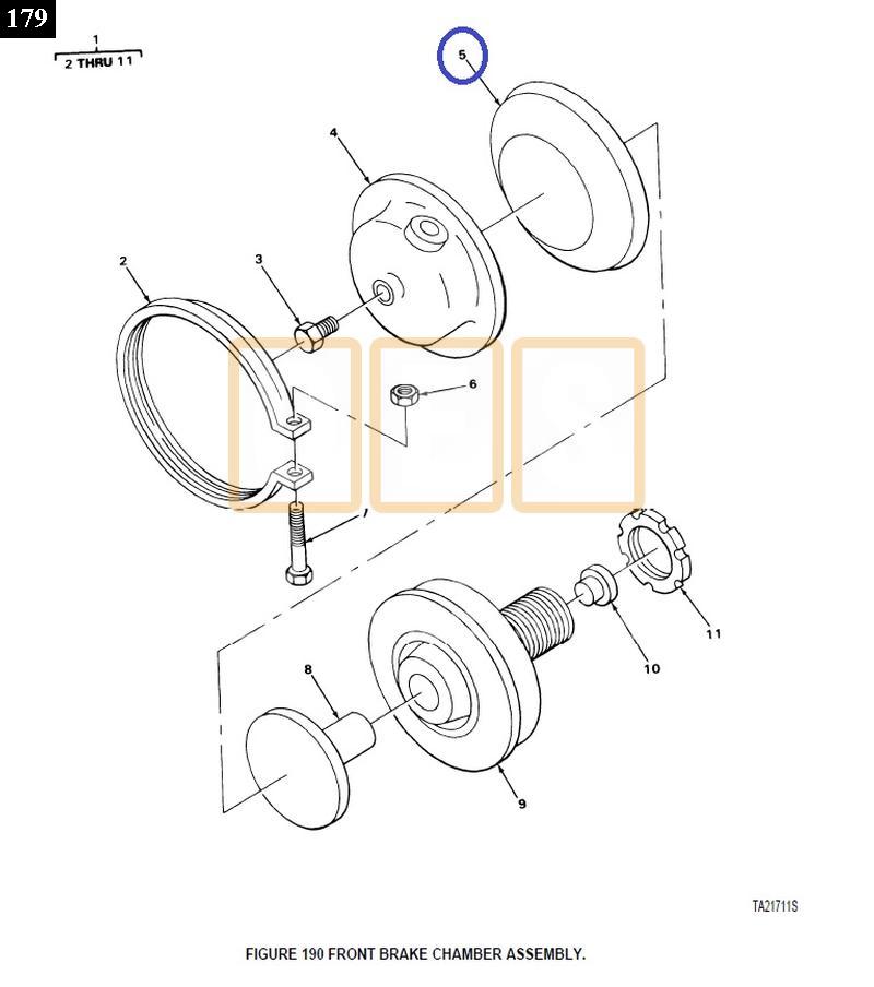 Front Axle Brake Chamber Diaphragm for M916, M917, M918, M919, M920 and M911 Model Military Trucks. Does not fit M915