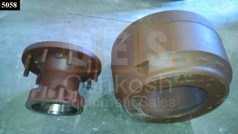 Left Hand Rear Tandem Hub and Drum Assembly for M939A2 Series Military Trucks. Includes Bearing Races, CTIS Seals, Hub Spacer, Brake Drum and Wheel Studs.