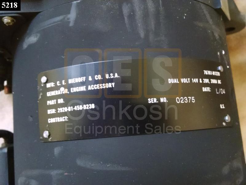 200 Amp Dual Volt Alternator. 12 Volt (14V) and 24 Volt (28V) Alternator for M1074 PLS Truck.
