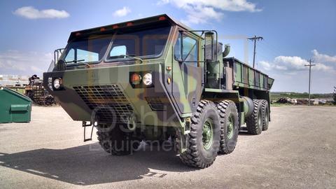 SOLD!!! ... 8X8 ... M985 Oshkosh HEMTT Cargo Truck Equipped with Hydraulic winch and rear Mounted Crane. This truck was re-manufactured by Oshkosh Truck Corporation in 1998 and has only Only 7734 Miles and 921 Operating Hours since re-build. This Vehicle is 8 Wheel Drive with two Driving Steer Axles, Allison Automatic Transmission and 450 HP of Turbo Charged Detroit Diesel Power. Equipped with a Rotating Crane for loading and Unloading Cargo. This truck has just been fully serviced and is in Excellent Condition. See Specs Below.