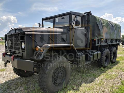 Fully Reconditioned M813 Military Cargo Truck manufactured by AM General with a Cummins NHC-250 Diesel Engine and a Spicer 5-Speed Manual Transmission. Equipped with a Rockwell 2-Speed transfer case and six wheel drive. The cargo bed storage area measures 14 feet long by 93 inches wide and has fold down sides for easy loading and unloading. This truck also features a heater and hard top.