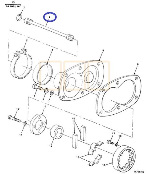 Splined Blower drive shaft. Used on Military 6000 pound Rough Terrain Forklifts with Detroit 453 Diesel engine.