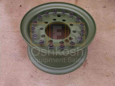 Two Piece HEMTT Wheel / Rim.. Used on Oshkosh HEMTT. This item includes a rebuilt 2-Piece Wheel with a new valve stem, O-ring, and nuts. Hemmit