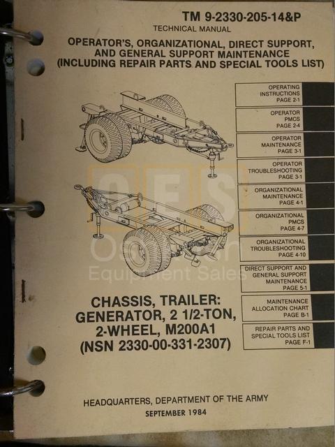 Technical Manual for M200A1 Chassis Generator Trailer NSN 2330-00-331-2307.