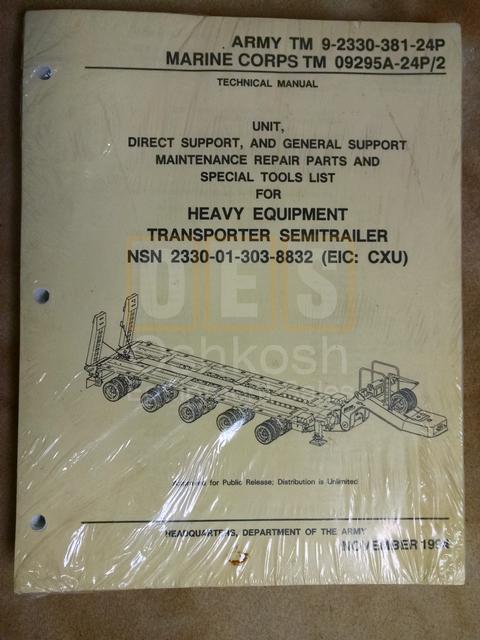 Technical Parts Manual for M1000 70 Ton Heavy Equipment Transporter Trailer NSN: 2330-01-303-8832.