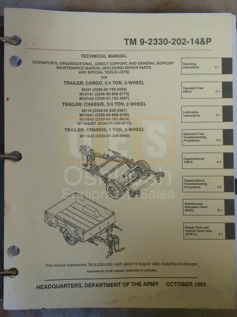 Operator's and Parts Manaual for M101 and M116 3/4 Ton Trailers