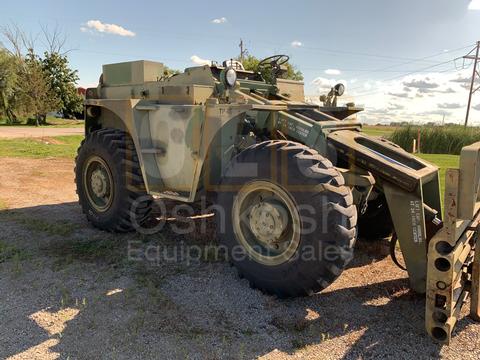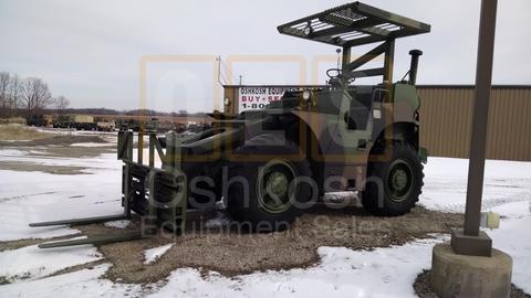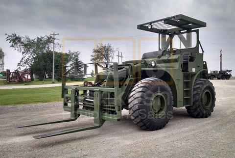 Fully Reconditioned Military Rough Terrain Forklift with 6,000 lb capacity, Four Wheel Drive, 3 Speed Transmission, Selectable Steering ( 2 Wheel, 4 Wheel, Crab) Fork Side-Shift, Full Machine Tilt, and Roll over Protection. Powered by a 4 cylinder Detroit Diesel 453. This unit has only seen 2029 hours of use. Fork tips are unworn and like new. These lifts are very user friendly and easy to operate. We have been using these machines at our facility for many years and they have proven to be very versatile and dependable.